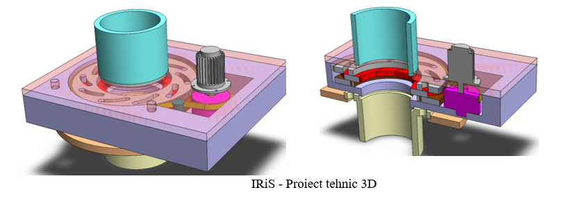 | 2025 | 08.01.2025- 31.12.2025 | 1. Proiectarea, realizarea desenului de executie si fabricarea noului dispozitiv IRis. Identificarea solutiei tehnice de automatizare si control. Proiectarea sistemului de automatizare si control. | Activități instituție: Proiectare si realizarea desenului de executie a dispozitivului IRiS si fabricare | Activități instituție: Analiza solutiei tehnice si identificarea echipamentului tehnic pentru integrare in cadrul dipozitivului IRiS. Poiectarea sistemului de automatizare si control. | cerere brevet OSIM; articol jurnal ISI; articol conferinta internationala; proiect tehnic dispozitiv IRIS; proiect tehnic sistem automatizare si control. | |